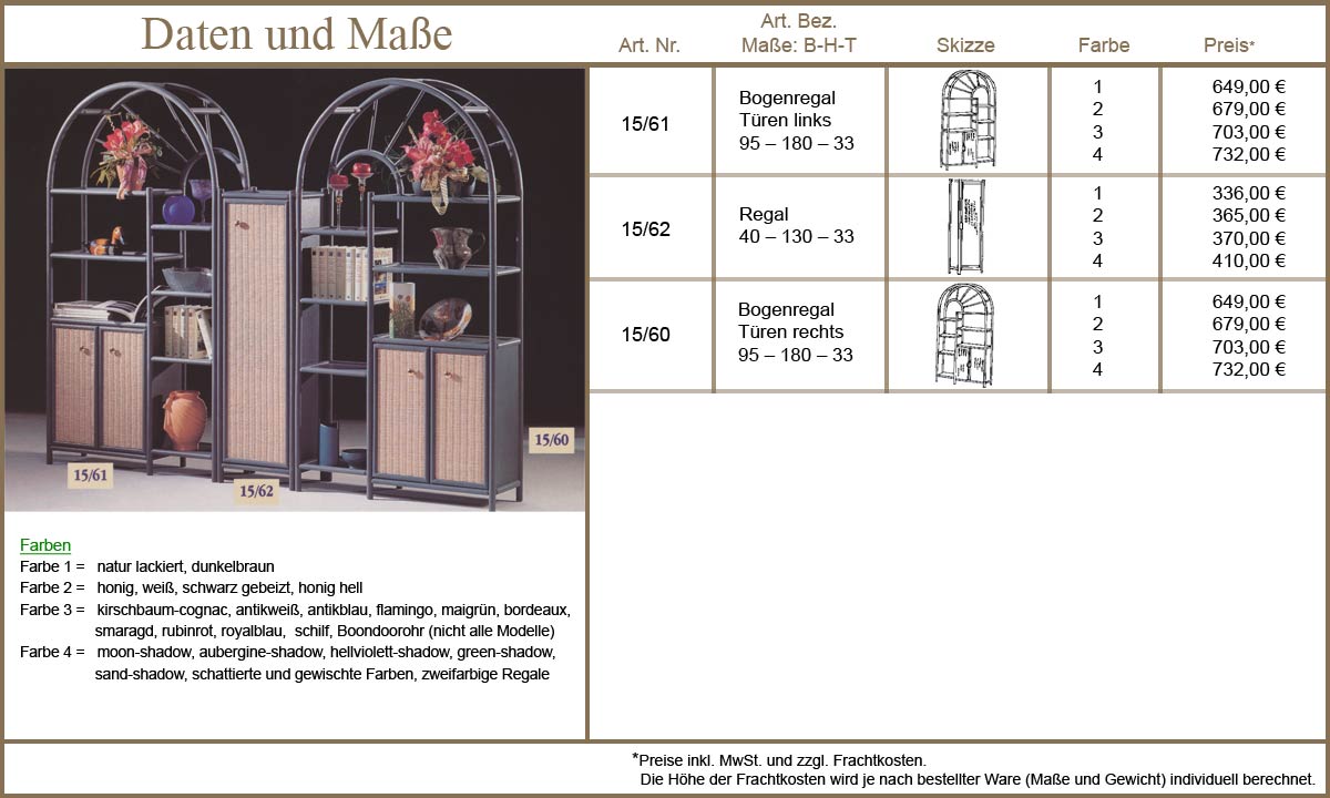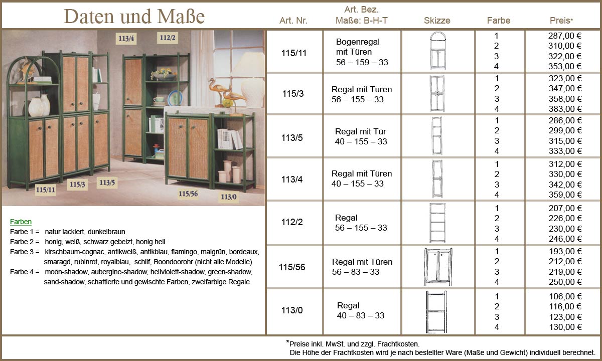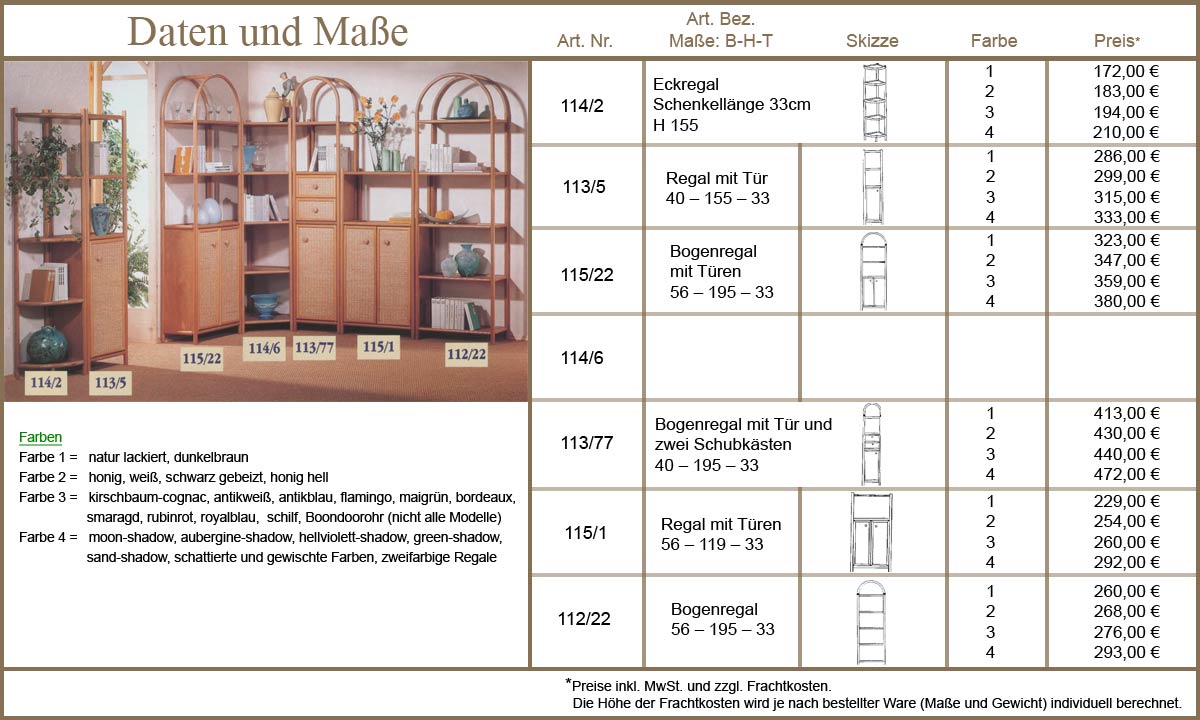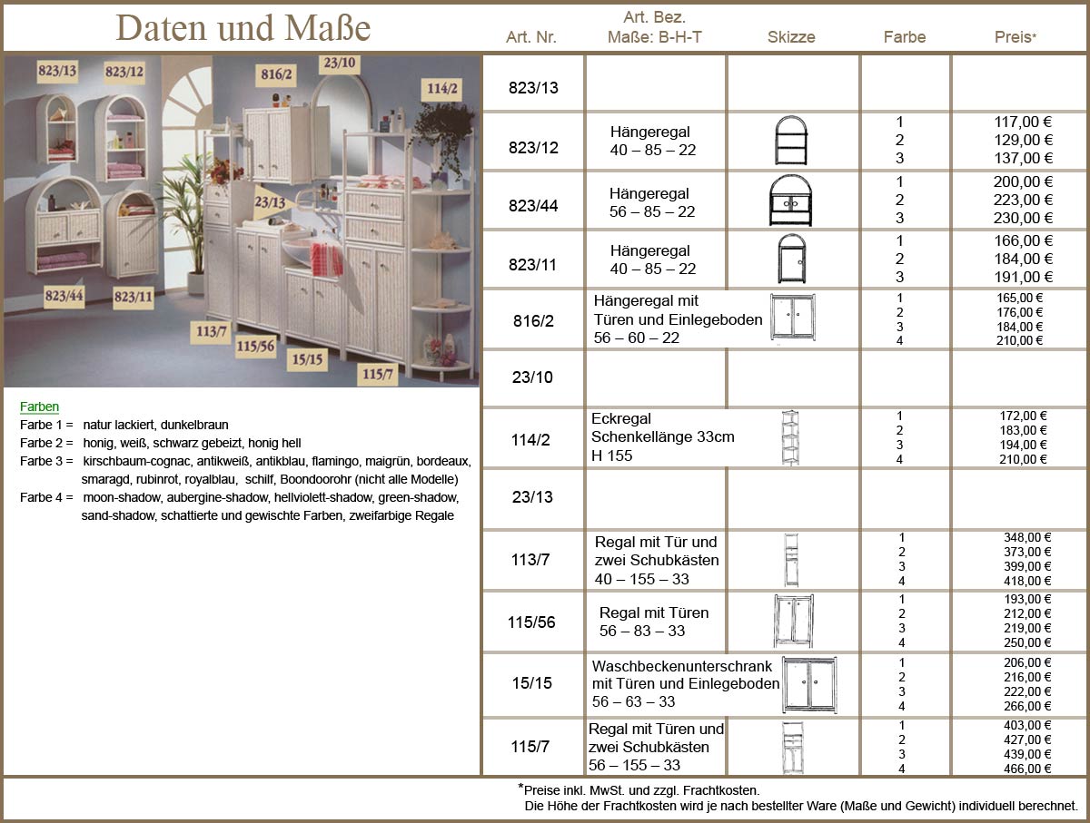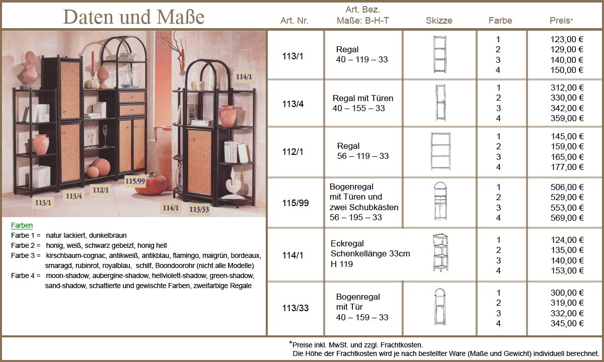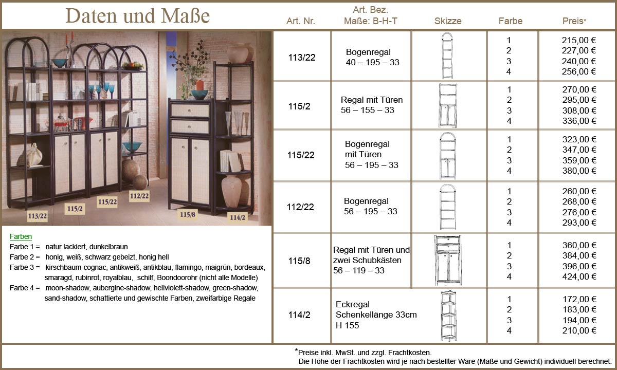 Ob Wohnzimmer oder Bad, Bücher oder Geschirr - diese modischen Regale aus Rattan bieten Stauraum für Alles. Sonderwünsche erfüllen wir gerne im Rahmen unserer Rastermaße. Die Höhe kann mit den bestehenden Ablage-Abständen variiert werden. Für genaue Informationen klicken Sie bitte in die Bilder...