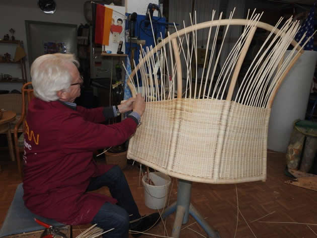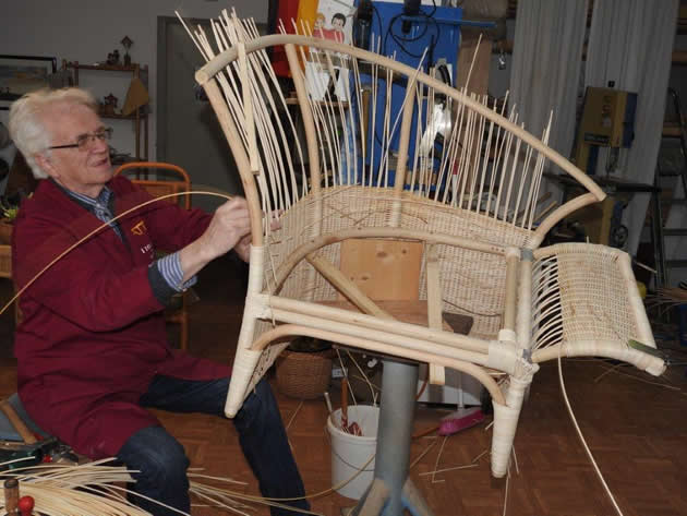 Gerd Backert, Begründer der Korbpolstermöbel Fabrikation Flecht-Shop Backert GmbH, Inhaber mehrerer Patente und Gebrauchsmuster, Korbmachermeister aus Leidenschaft und ständig auf der Suche nach neuen Formen und Verarbeitungstechniken.
